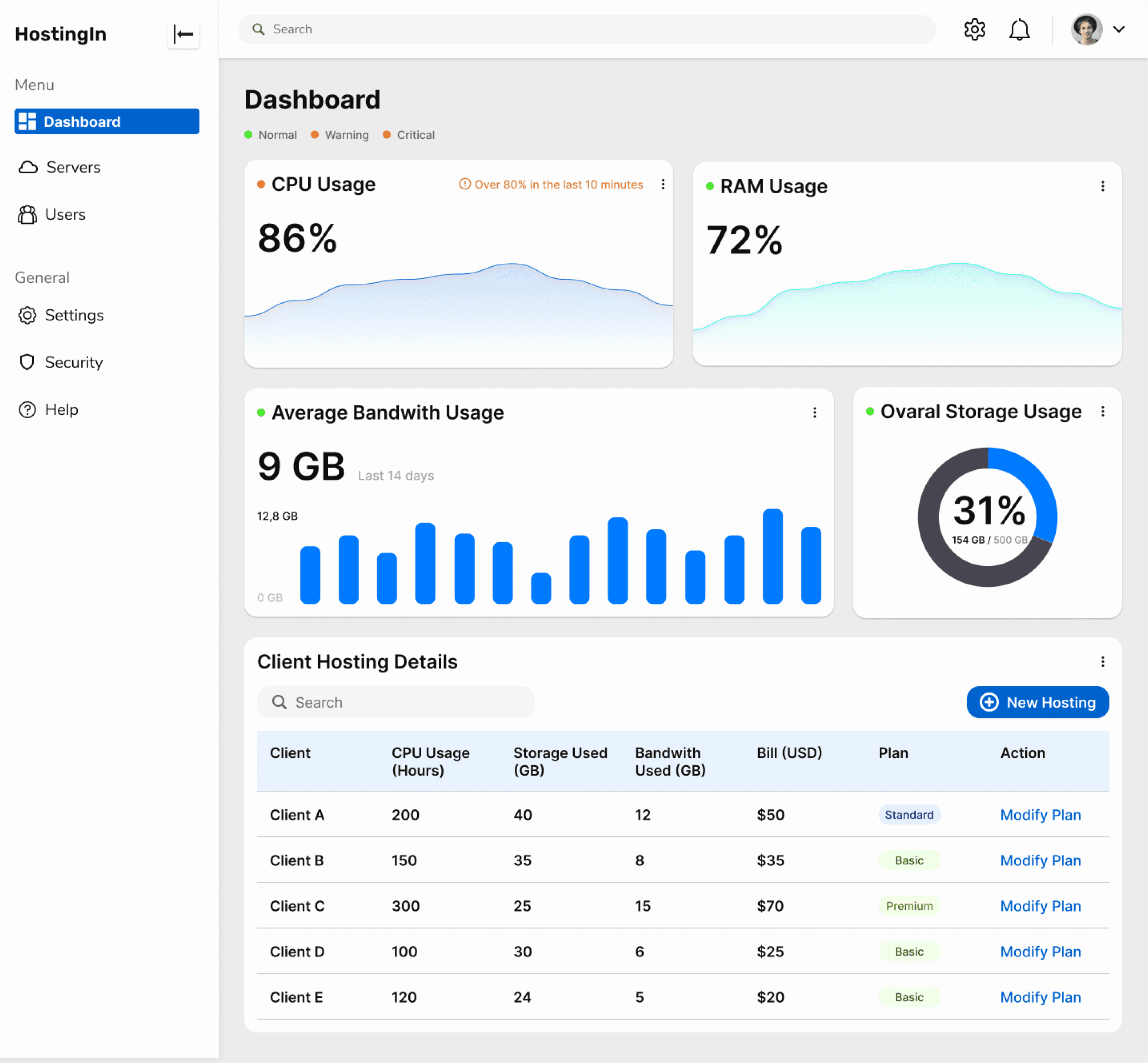 Many users found it difficult to monitor their server in real time and manage their hosting services efficiently. Key information like bandwidth and storage usage wasn’t clearly presented, and there were no notifications when issues occurred. The challenge was to create a dashboard that is easy to use and accessible for all types of users, including those with visual limitations.